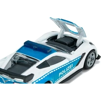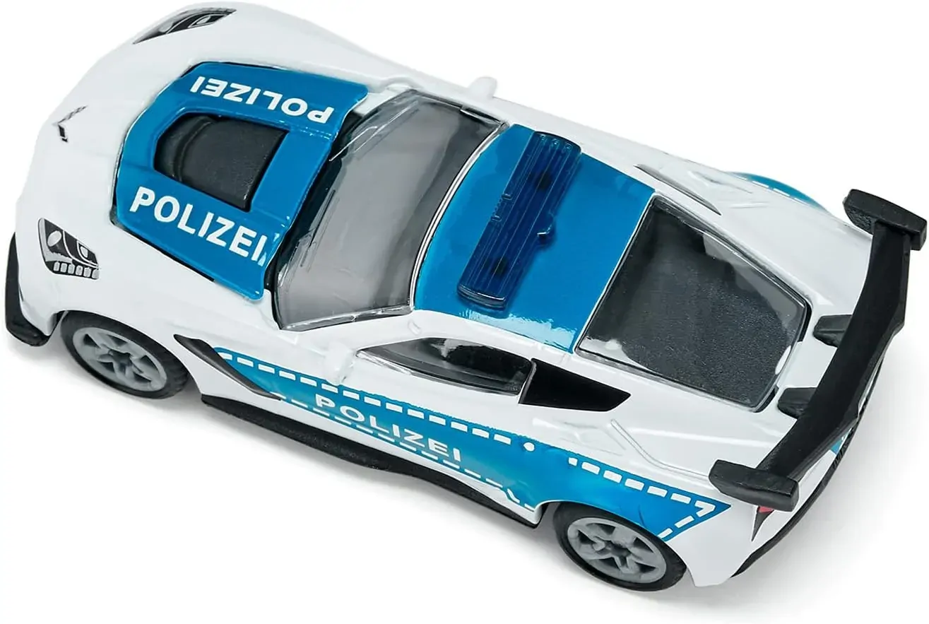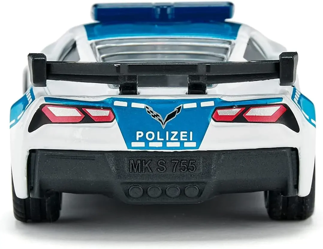 No chance for crooks on the run - this speedster catches them all: With the Chevrolet Corvette ZR1 the police are certain to win any pursuit chase, because the American muscle car with V8 engine brings enormous power to the highway, and almost unbeatable, even off-road. Its aerodynamic design with metal bodywork, rear spoiler, sport rims with rubberised tyres, and blue all-round light make the white and blue service vehicle a real power model. The bonnet can be opened and gives a clear view of the powerful inner workings of the Chevrolet Corvette ZR1 which, as a police service vehicle, is the star of the playroom vehicle fleet.