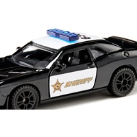 The safety of their residents comes first for the County Sheriff. 48 of the 50 Federal States in the United States employ the law-and-order services of a Sheriff, a specially elected law enforcement officer. When chasing perpetrators all across, at times, very rural areas with long stretches of federal roads, the sheriff needs all the available horsepower an engine can generate - such as that of the legendary Dodge Challenger SRT. The V8 engine of this hot rod can deploy a thunderous 700 horsepower. The wide tyres made of rubberised material have trouble taming and transferring such enormous power to the road theatrical tyre squealing is thus guaranteed. The inserted headlamps give this hot rod the look of a ferocious beast. The doors can be opened wide, making the effort of stepping in and out of the car a breeze. Serving as the official vehicle of the County Sheriff, the Dodge is painted in the characteristic black and white of the US police and also bears the golden badge and the lettering SHERIFF on the sides. Nothing left to do, but turn the blue light on and take off in pursuit.