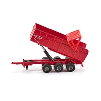 Top tractor in HO format with powerful three-axle tipper trailer. True-to-scale original wheel rims with rubber tracks. Removable cover, front loader and trailer decoupler. The model is complemented with an all-new, highly detailed front loader with tipper. The Krampe three-axle tipper is almost exclusively made of METAL, with the exception of small components. For the 1:87 scale, this represents a new quality standard. The detailed working with many small features in this combination makes this model an attractive part of any kids' farm, collector's display or model railway.