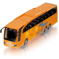 En route to holiday sun by coach. The new Travego from Mercedes-Benz brings passengers and luggage safely and comfortably to sunny beaches. It is easy to get in and out of the bus through the doors which can be opened elegantly. Luggage is stored in the case compartment which is accessible on the right and left via large opening doors. The six rubberised tyres, fitted on three axles, ensure a smooth drive. The colourful and sunny bus paintwork reflects the joyful holiday anticipation. This bus model is also used by the German National Soccer Team.